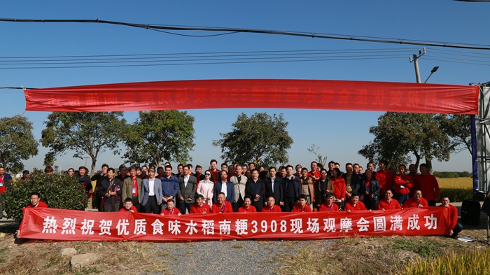 最后與會(huì)代表們合影留念,大家一起高呼“南粳3908、軟米最佳、先種先發(fā)”。