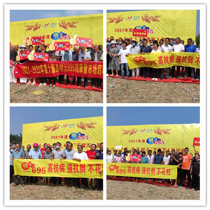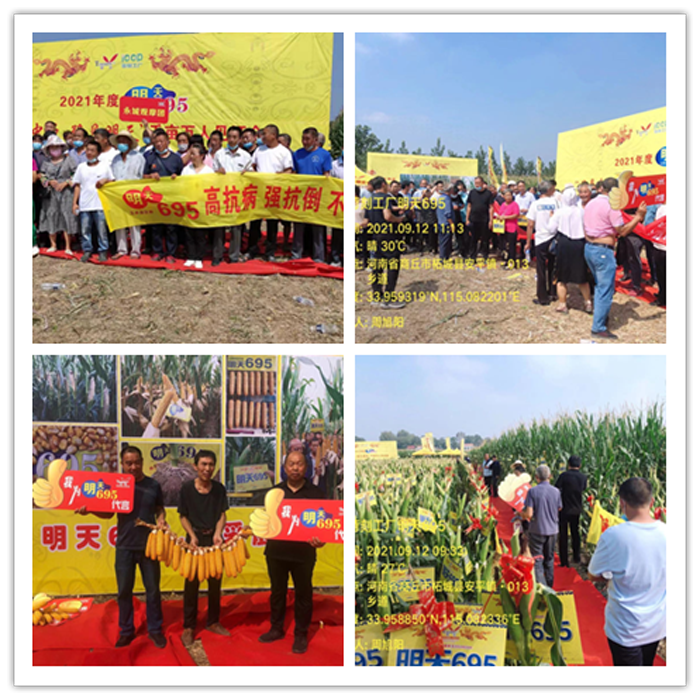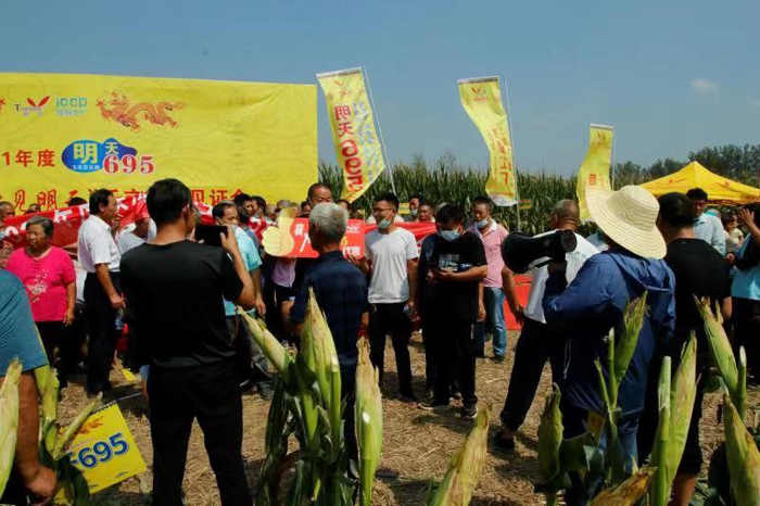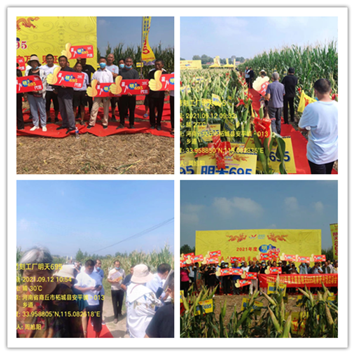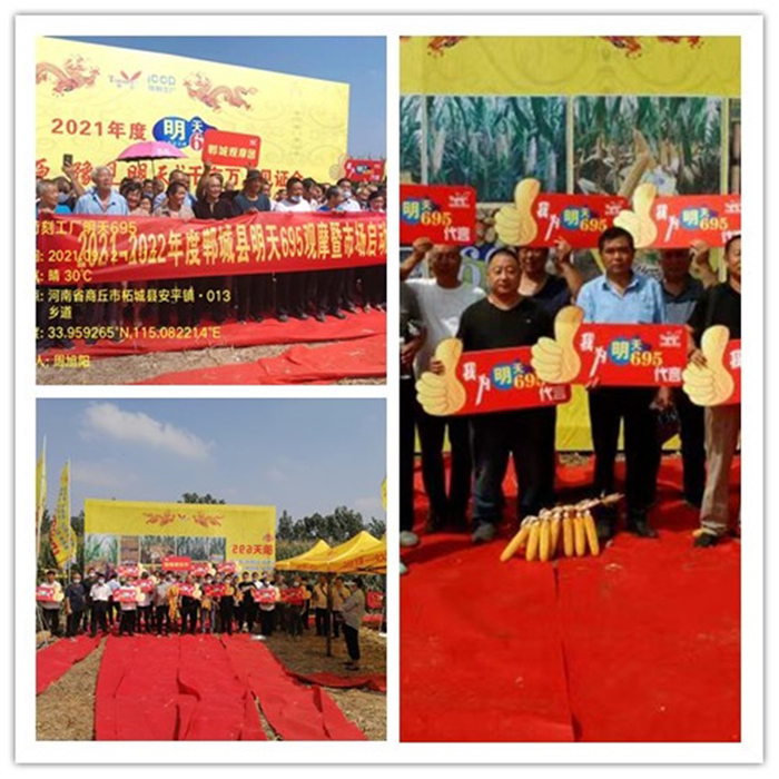 2021年9月12日,江蘇明天種業(yè)河南明天分公司在商丘市柘城縣隆重舉辦“2021年度明天695問鼎中原-豫見明天暨ICCP苛刻工廠千畝萬人”觀摩會(huì)。來自商丘、周口、開封、許昌、駐馬店、安陽等40多個(gè)縣市區(qū)近3000名優(yōu)秀合作伙伴及種植大戶到場(chǎng)觀摩。